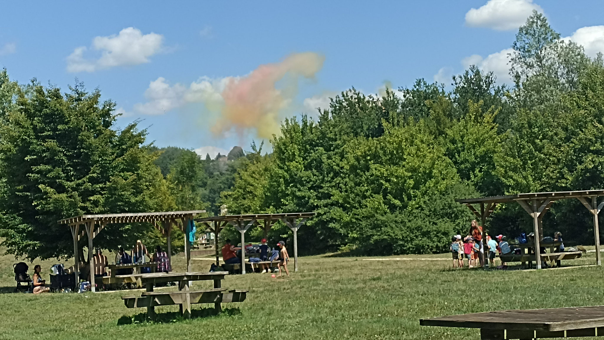 Pique-nique dans un jardin ombragé.